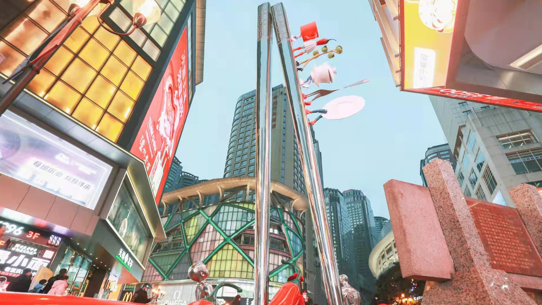 解放碑八一路好吃街新标志性雕塑亮相 从火红辣椒开启“好吃狗”美食之旅