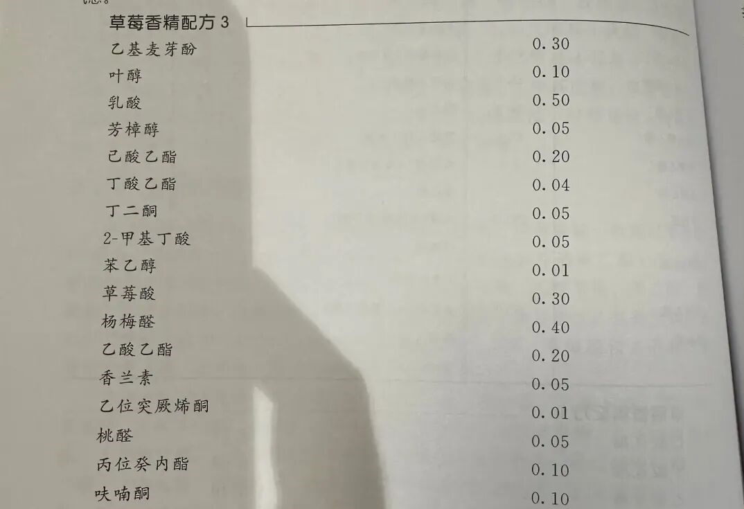 这是一个典型的草莓香精配方