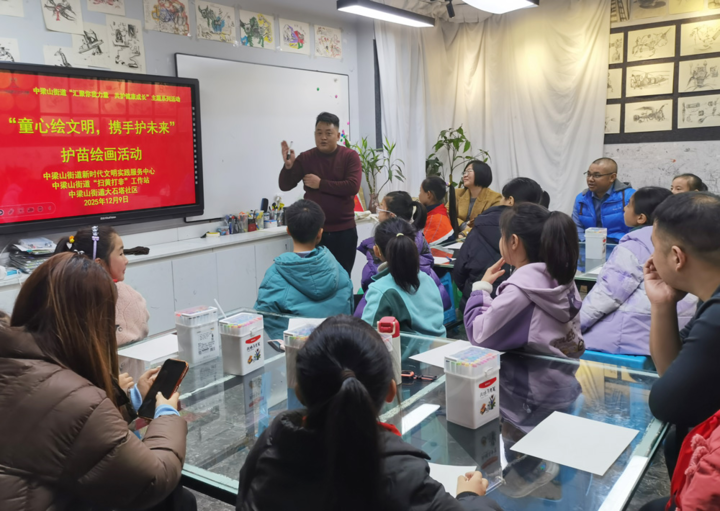 九龙融媒讯(记者 冉冉 摄影报道)12月9日,中梁山街道新时代文明实践服务中心、中梁山街道“扫黄打非”工作站联合大石塔社区在大石塔社区的艺术培训学校开展了以“童心绘文明,携手护未来”为主题的护苗绘画活动,通过亲子协作绘画,传递“扫黄打非”理念,增强家庭对有害信息的防范意识,并促进家长与孩子的情感交流,以艺术创作形式深化家庭监护责任,护助“小苗”健康成长。