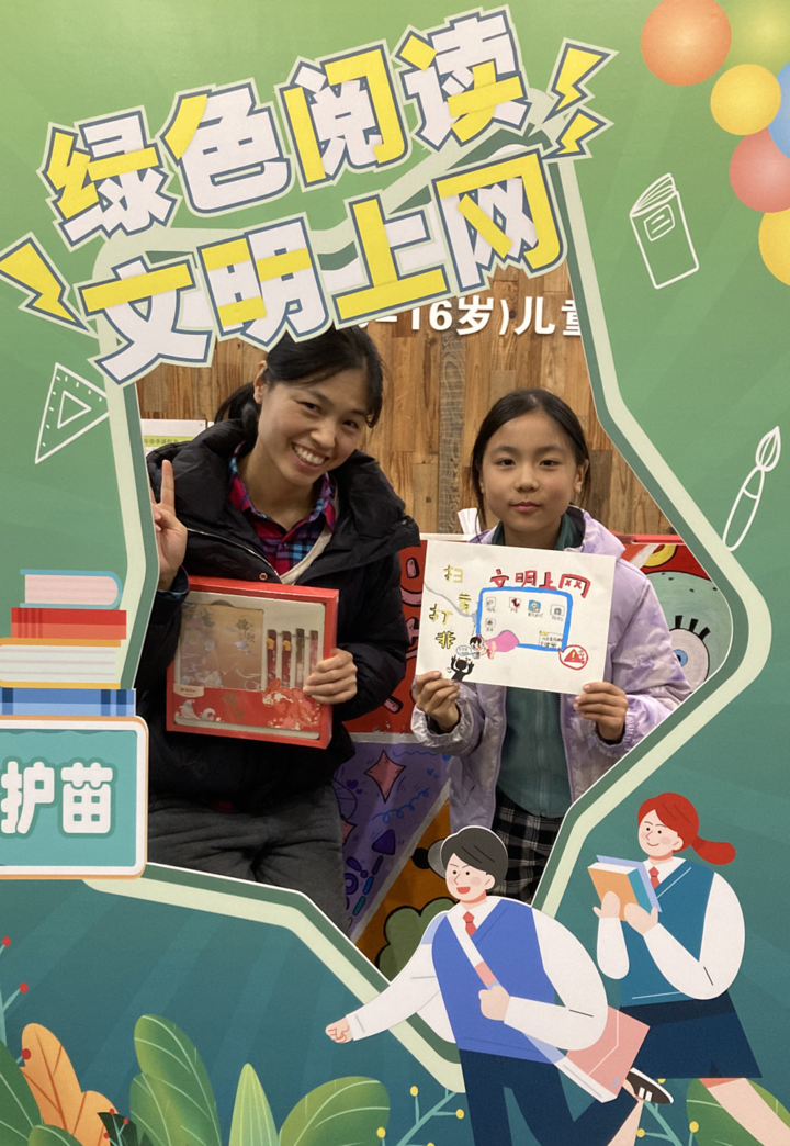 在绘画环节,孩子们拿起画笔,以“文明”“护苗”“网络安全”等为创作核心,将心中对美好家园、文明社会的向往,以及对自我保护的理解融入色彩与线条中。一张张画纸上,既有对绿色网络环境的描绘,也有对文明行为的展现,每一幅作品都充满童真与创意。