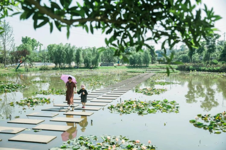 区别于单纯的水乡风光和园林景致,在西池田园各个风格都能窥见,且自有一番别样的乡野风情。淳朴的土墙茅舍、古朴的唐宋风格建筑群,让人恍若隔世,近来尤其受年轻人追捧,被评价为是一处“时尚的乡村田园”。
