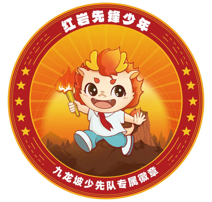 “少年如朝阳、如乳虎、如春前之草。九龙坡少先队专属徽章,整体采用最能代表中华民族的红加黄的配色组合,色调温暖向上;画面中心是高举火炬向前奔跑的小龙人形象,代表九龙坡区每一位少先队员;徽章背景元素则以红岩、朝阳、群山组合而成,寓意红岩先锋少年就像朝阳一般,代表着希望,他们在‘红岩精神’的指引下努力奔跑,不断跨越过一座座高山,在磨砺中成长,谱写青春的赞歌。”谭昊瑜解读道。