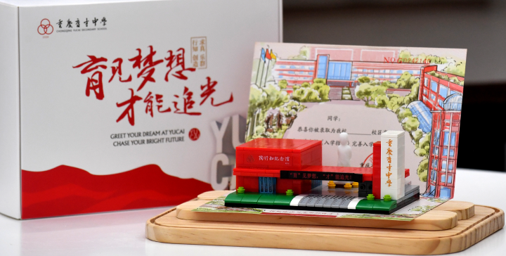 往年育才中学的录取通知书都会有惊喜,今年育才中学的录取通知书更是别出心裁,从2D到3D,从1939年到2024年,通过巧妙设计让新生们更加了解学校文化和学校历史。“第一反应是意外,然后是惊喜。”高2027届新生谭煜飞告诉记者,在他印象中,录取通知书通常是一张薄薄的纸,用文件袋装着,但他拿到录取通知书的确是满满一盒,里面不仅有一张录取通知等纸质材料,让他意外和惊喜的是还有几袋“乐高”积木,他当即拆开并按照说明书拼装了起来,半个小时之后,一座重庆育才中学大门拼好了,最后一步,他把3D微雕的陶行知像安装在大门背后的“广场”中央,一幅“还原”现实场景的积木拼装完成了。
