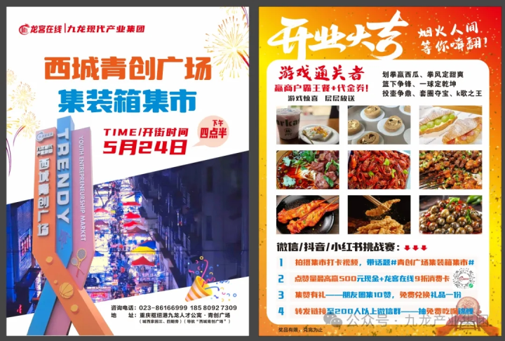 昔日荒芜地,今朝烟火城!九龙现代产业集团联合西彭镇巧手点金,将城市边角焕新为潮玩街区——5月24日西城青创广场盛大开业!邀您来战“拳王争瓜赛”,嗨玩“游戏大比拼”,让您在这个钢铁与霓虹交织的奇幻世界里,感受最地道的人间烟火气!