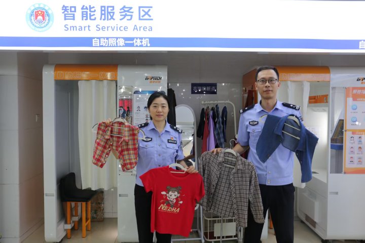 “以前听说要穿深色衣服,我特意翻出压箱底的黑T恤,结果拍出来像‘老干部’!”6月9日,在区公安分局出入境办证大厅,大学生小李惊喜地发现了新添置的衣饰焕新点。丝绒质感的酒红、格纹拼接的藏青、提花暗纹的墨绿……20余款领片设计简约却暗藏巧思:所有领片均为深色系,完全符合出入境证件照背景浅色、服装需深色的硬性要求;采用缎面、蕾丝包边等元素,避免传统深色上衣的沉闷感,尤其受年轻女士青睐;魔术贴设计可灵活调整松紧,无论是衬衫还是T恤,一秒提升造型精致度。