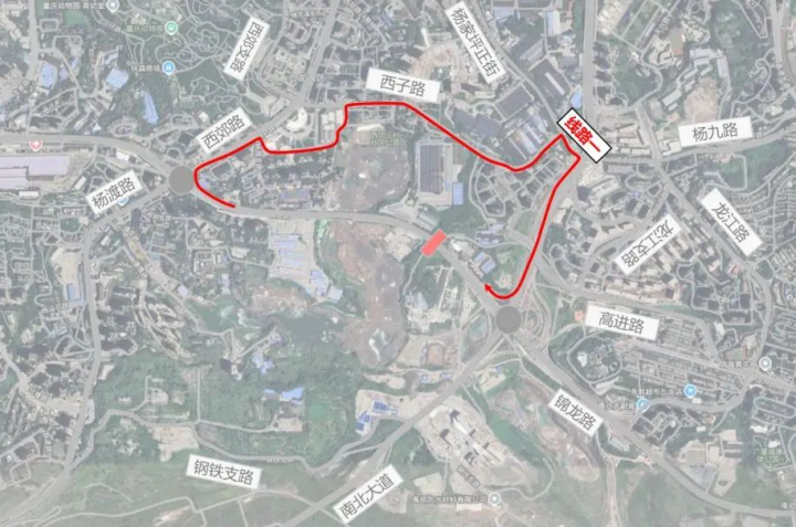 二、封闭施工期间锦龙路往李家沱方向的车辆经毛线沟立交——西郊路——德进二支路——西子路——杨九路——九凤大道——锦龙路立交——锦龙路绕行(线路一);大型货车可经毛线沟立交——西郊路——杨家坪环道——杨九路——九凤大道——锦龙路立交——锦龙路绕行(线路二)。