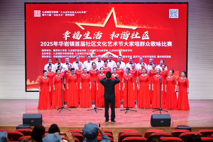 田坝村社区胡心俊、戴利蓉带来的男女声二重唱《最美的歌儿献给妈妈》,用深情的歌声表达对母亲的感恩,瞬间将观众带入温暖氛围;中南村社区秦富文的女声独唱《美丽家园》,描绘出幸福家园的美好画卷,引发大家对家乡的眷恋;华岩新城社区秦岭演唱的《中国人》,以铿锵有力的歌声唱出了身为中国人的豪迈气概,台下观众纷纷跟着节奏鼓掌。