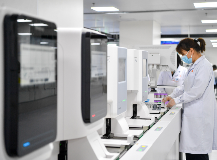 在医疗设备方面,医院配置了直线加速器、超高端自由心率CT、3.0T超导核磁共振、PET-CT等一批区域领先的高精尖设备。在智能检验方面,设置4条智能流水线(含智能采血流水线以及血球流水线)可单次处理5000份标本,24小时不间断运行。