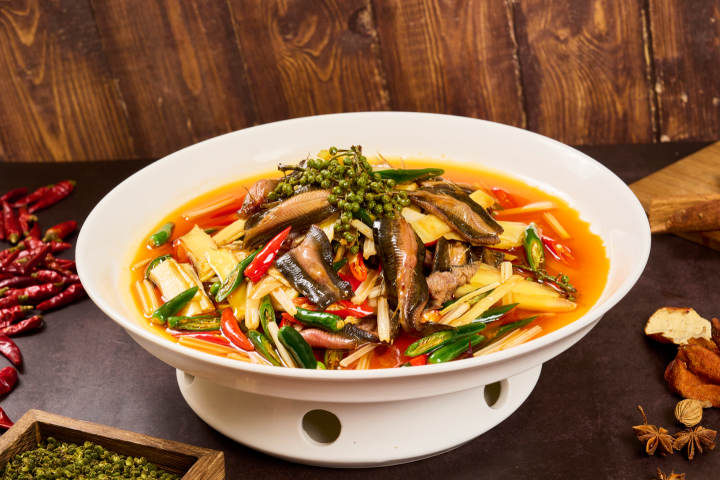 推荐理由:麻辣江湖,姜爆更欢。麒麟姜爆鱼鳅片是重庆江湖菜中的一道匠心之作。精选鲜活鱼鳅与生姜,鱼鳅肉质鲜嫩,富含蛋白质、维生素和矿物质等营养成分。生姜则具有去腥增香、驱寒暖胃的功效。一筷入口,姜香裹挟着鱼鳅的鲜味在舌尖绽放,配上独一无二的用餐环境和长江滚滚东逝的豪情壮志,成就了这道充满山城烟火气的味觉记忆。