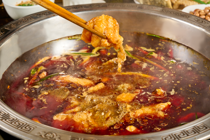 菜品介绍:冉记的独特,在于将寻常食材化为神奇。一绝老窖豆豉:豆豉是灵魂。冉家沿用古法,精选黑豆经老窖发酵,再以文火慢炒至焦香,入口先有酱香,后泛回甘,与火锅的麻辣交融后,口感层次比火锅更分明。二绝过油草鱼:新鲜草鱼切片后先入油锅轻炸,鱼皮酥脆、鱼肉紧致,再入火锅稍煮,既锁住鲜嫩,又添一层油香。三绝秘制油碟:香油打底,埋入一勺豆豉碎,再撒上手舂花生、炒芝麻与葱花。吃前轻轻搅动,豆豉的醇、花生的脆、芝麻的香层层递进,蘸一片鱼肉,便是“麻辣鲜香”四字最生动的注解。