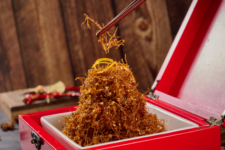 菜品介绍:制作一盏灯芯牛肉丝,需历经匠心和时间的考验: