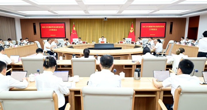 近4个月以来全区卫生健康事业取得新进展,龙头医院的区域标杆逐步立起来了,紧密型医共体建设全面动起来了,特色专科医疗资源加快聚起来了,医疗资源“向西挺进”的速度快起来了,应予充分肯定。同时,要高度关注存在的突出问题,下定决心、鼓足干劲,全力攻坚突破。
