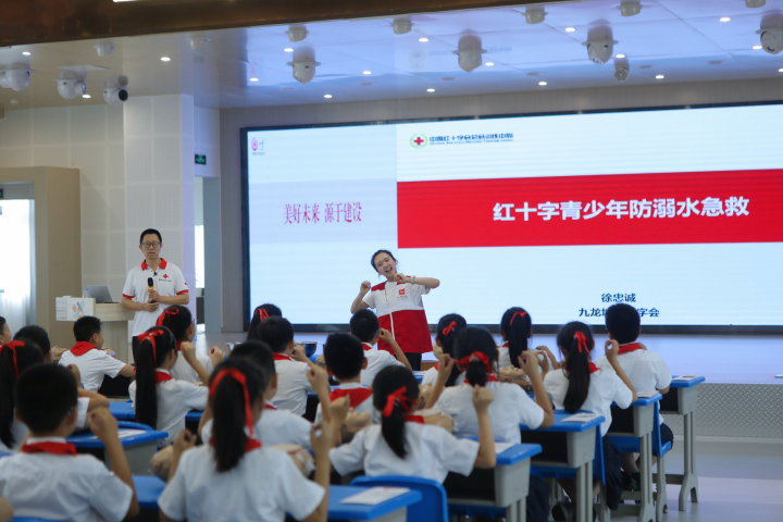 九龙融媒讯(记者 邬姜)近日,九龙坡区青少年生命健康安全课暨红十字应急救护普及专题培训(讲座)——青少年防溺水急救示范课在谢家湾金茂小学开展。作为区应急救护培训基地(鹅公岩)“引进来+走出去+路演快闪”先导项目,区红十字会特邀市级主讲师资徐忠诚老师授课,并邀请和组织市区重点师资全程参与教研。