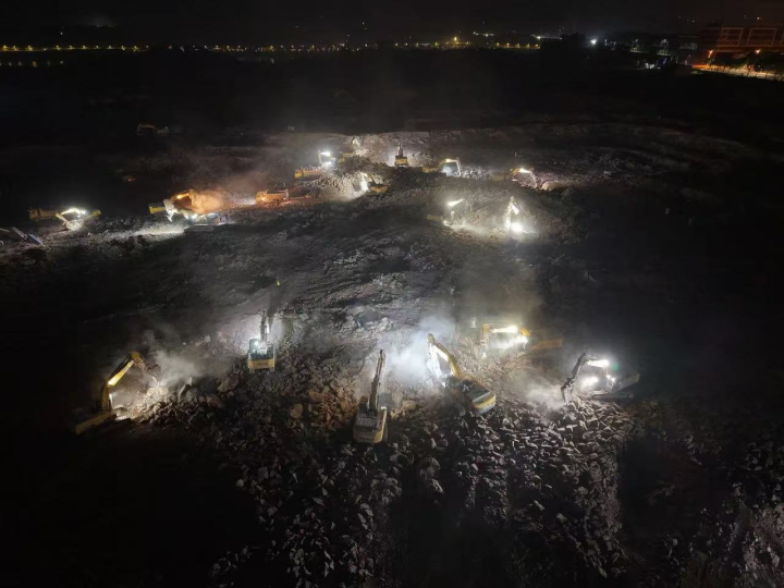 九龙现代产业集团联合九龙新城园区管委会,与区住房城乡建委、九龙坡区规划和自然资源局、区生态环境局、区公安分局、区土储中心、西彭镇、九龙城乡运营集团、西南铝集团、施工单位、监理单位、跟审单位等单位共同构建起高效的协同作战体系。他们深入一线,在施工现场敏锐地发现问题、高效地解决问题、有力地推动落实。同时,九龙现代产业集团践行“动态优化、精细管控”理念,通过精细化科学施工提升效率。编制《平场工程分区域实施方案》,将作业面划分为重点保供区与一般施工区,建立动态进度管控机制。在重点区域建立机械设备动态调度机制,实施工序无缝衔接管理,确保核心作业面按期交付;建立岩土方平衡模型,动态匹配挖填需求,减少转运损耗,实现100%石方循环利用,极大提高了资源利用率;建立动态进度日例会制度,及时解决项目施工可能存在的难题,保障了施工的顺利进行。