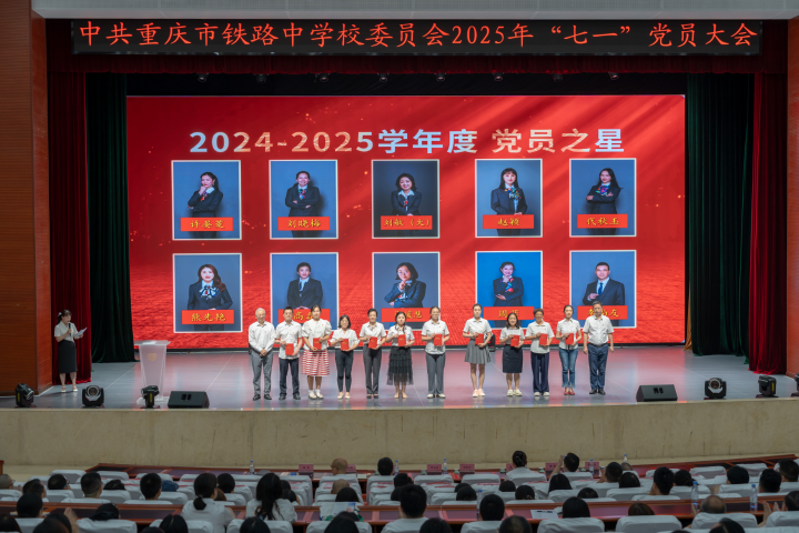 九龙融媒讯(记者 廖婉廷)6月30日下午,重庆市铁路中学校召开“七一”党员大会,学校全体党员参会。