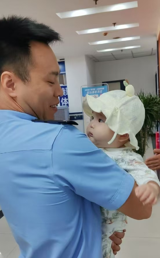 得知家长急需如厕,王洪焱毫不犹豫接过孩子:“您放心,孩子交给我!”根据现场办事群众张先生回忆,民警接孩子的动作虽略显生疏,但立刻调整姿势轻拍孩子后背,低声安抚“宝宝看,妈妈马上回来”,孩子很快停止哭闹,好奇地抓住民警的警徽。