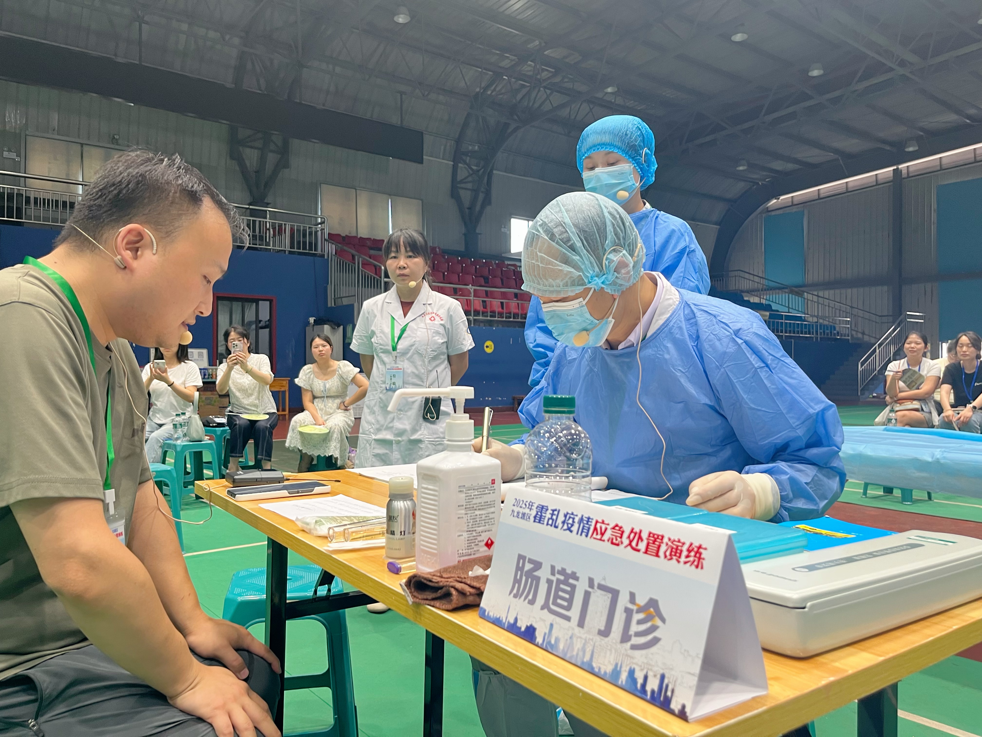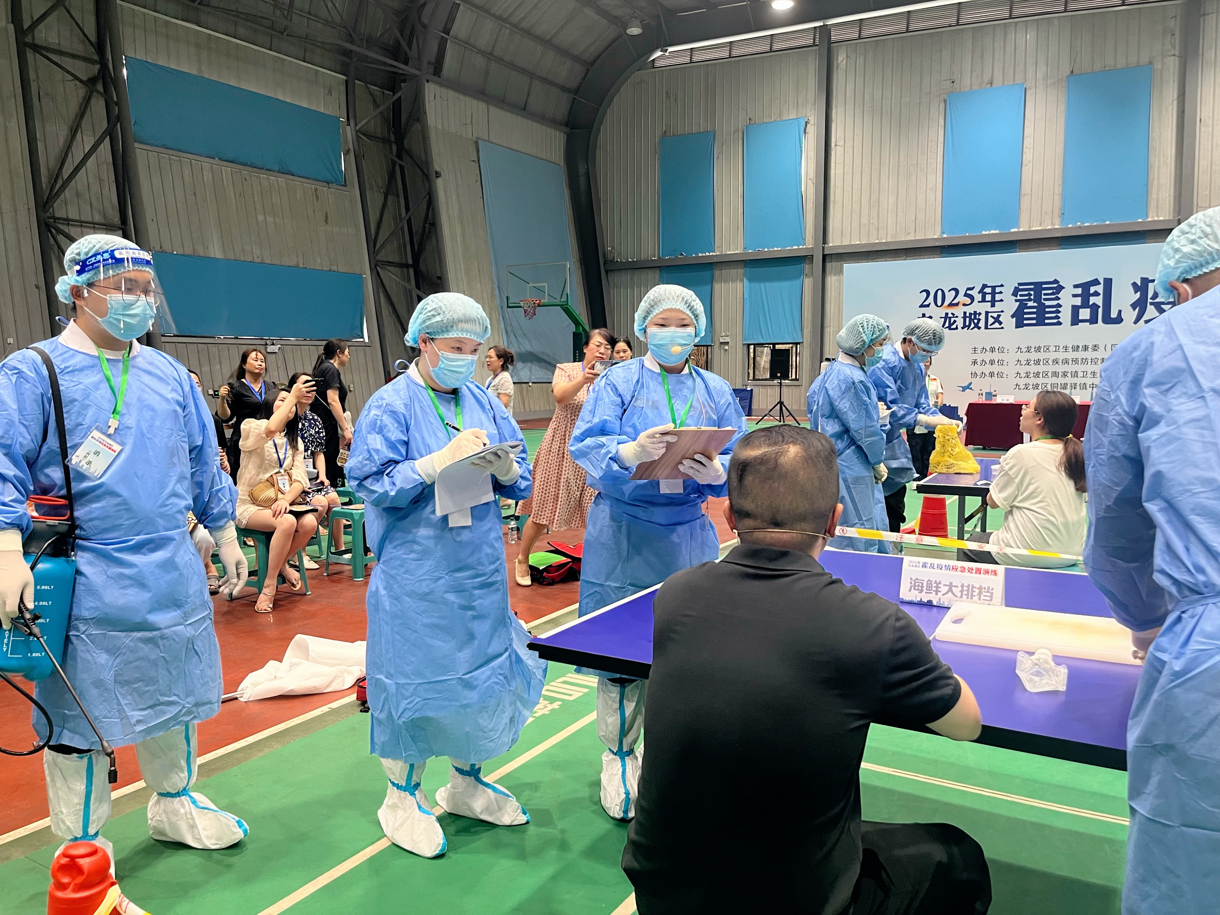 本报讯(记者邬姜)7月2日下午,由区卫生健康委主办,区疾病预防控制中心及九龙新城副中心(区中西医结合医院)联合承办的“2025年九龙坡区霍乱疫情应急处置演练”在九龙新城举行。此次演练汇聚全区疾控力量,深度模拟霍乱疫情处置场景,全面检验并提升区域疾控队伍的协同作战和实战处置能力。演练集结区疾病预防控制中心、九龙新城副中心和3个分中心等32名专业人员参与实战演练,近百名医疗卫生工作者现场观摩学习。