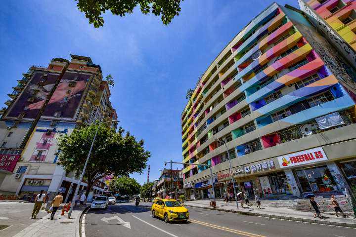 七彩装扮的黄桷坪涂鸦艺术街,吸引着全国各地的游客来此游览打卡。