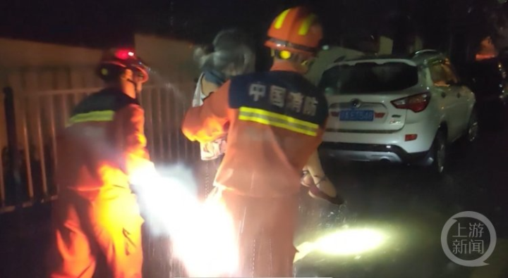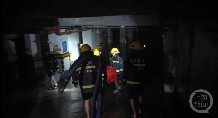 凌晨时分,暴雨如注。抵达九龙大厦地下车库后,消防救援人员发现车库入口已被湍急的雨水淹没,积水深度超过0.7米,多辆私家车浸泡水中。消防救援人员立即制定方案,一方面组织人员利用手抬机动泵设备展开强力排涝作业;另一方面联合物业人员切断电源,防止次生灾害发生。经过近10小时的连续作业,车库内积水基本排清,险情得到有效控制。