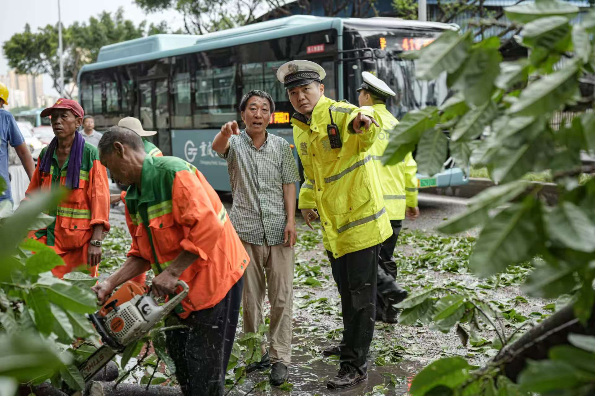 九龙融媒讯(记者 冉冉)7月 8 日傍晚,暴雨突袭九龙坡区,导致锦龙路一行道树枝干折断,阻碍通行,且存在安全隐患。九龙坡警方闻警而动,协同相关部门合力应对险情,用最快时间排除路障,保障车辆平安通行。九龙坡警方提醒:汛期行车,安全第一。如遇紧急情况,及时报警求助。