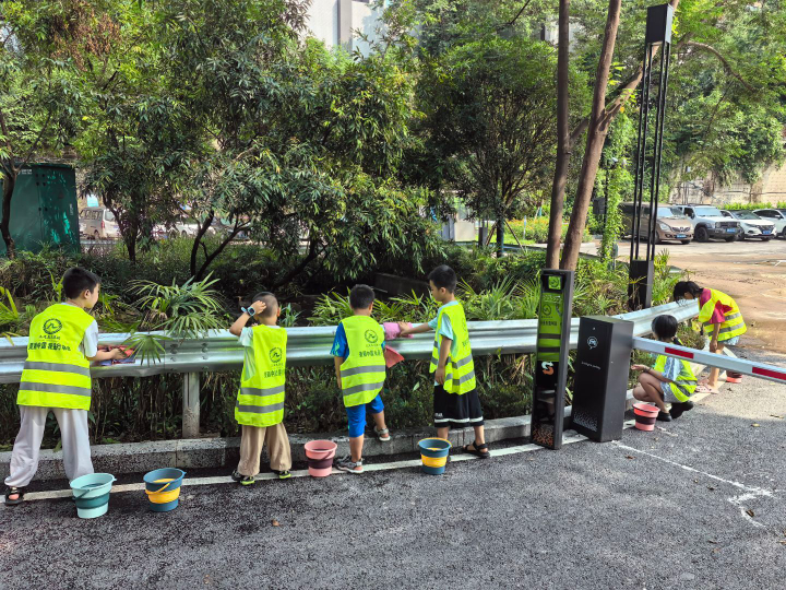 小小志愿者们也没闲着。10岁的孔馨悦和同学们拿着抹布,仔细清理健身器材、道路护栏缝隙里的泥沙。"老师说保护家园人人有责,我们也要出力。"小姑娘认真地说。
