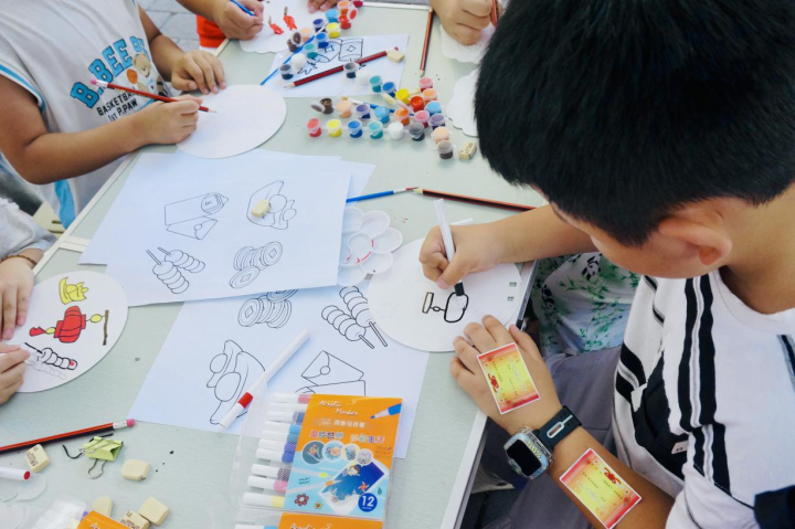 7月12日傍晚,“传美·寻趣”游园会在社区小广场热闹启幕。活动现场,团扇彩绘DIY、香囊制作、投壶比拼、扎染小方巾、树叶拓印、写福字与卷轴六大体验区依次排开,瞬间点燃居民热情。团扇彩绘区,大家或参照古韵模板,或发挥奇思妙想,以细腻笔触在扇面勾勒山水、晕染花鸟,让传统团扇成为独一无二的艺术载体;香囊制作摊位,艾草清香四溢,参与者亲手填充艾草,将驱蚊祈福的古老智慧,融入香囊的温度里;投壶比拼区,“箭落金壶”间,古雅民俗场景重现,老少携手上阵,在欢笑声中感受传统游戏的独特魅力;扎染小方巾环节,染料在布料上肆意晕染,化作灵动纹理,居民亲眼见证非遗技艺的神奇魔力;树叶拓印区,锤子轻敲,叶脉纹理悄然留存纸上,完成一场 “自然与艺术” 的诗意对话;写福字与卷轴活动,墨香悠悠飘散,大家执笔落墨,将对生活的美好期许,融入一撇一捺间。