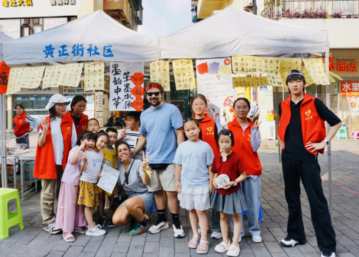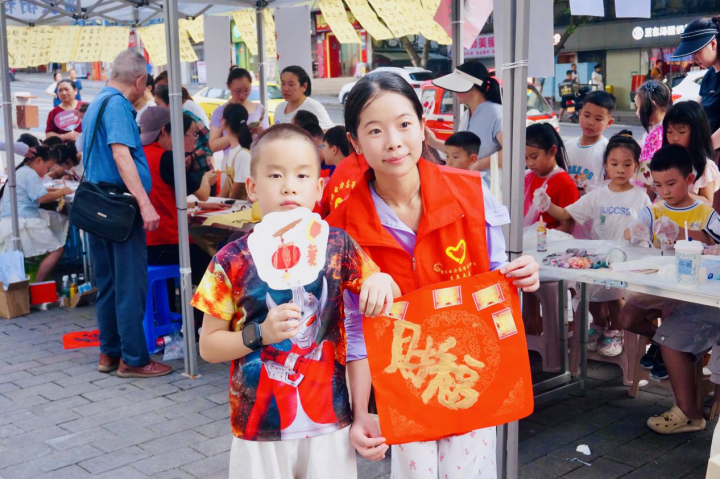在活动途中,偶遇外国友人时,孩子们主动邀约合影。稚嫩的笑容与异国面孔交织成温馨画面。实践团成员以创新形式活化非遗技艺,让千年文脉在跨国对话中焕发新生。这场浸润着文化自信与开放包容的邂逅,既彰显了中华文明传承的蓬勃生命力,也为构建多元共生的全球文明画卷增添了青春注脚。