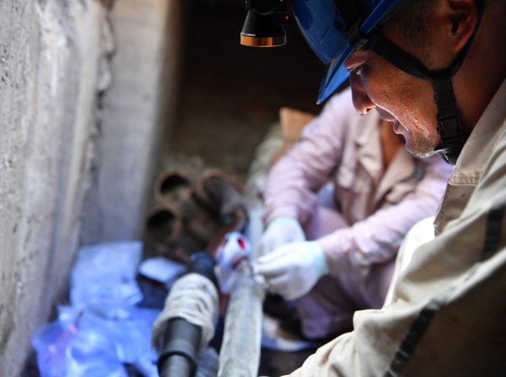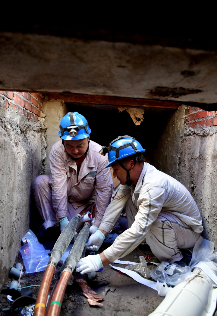 7月16日上午的阳光刚爬过民主村的屋顶,10千伏劳动村开闭所的电缆通道里就已攒足了暑气。国网重庆市区供电公司九龙供电中心的工作人员正蹲在狭窄的通道里,专注地进行电缆中间头制作,为开闭所的投运做最后准备。该开闭所投运后,将为民主村片区用电再添保障,满足社区因城市更新和老旧小区改造带来的用电需求增长,进一步提升供电可靠性。