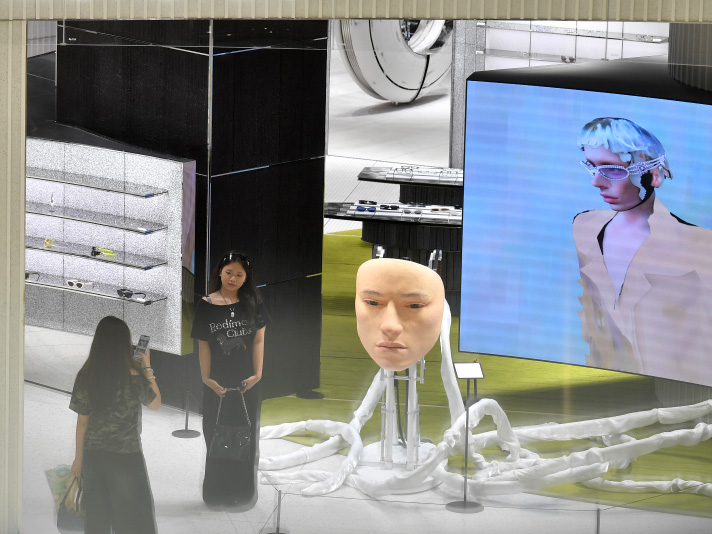 商场里,滑冰女孩像紫色的风,在人群中穿梭;店铺门口,奇妙装置引得行人驻足,目光在新奇与清凉里打转。