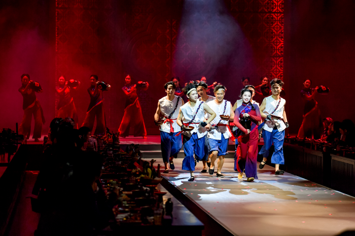 据了解,“巴国遗风 国潮九龙”2024重庆·九龙坡中国旅游日暨全景沉浸式文化主题餐秀——《礼宴巴国》首秀。《礼宴巴国》以巴文化为创作背景,以巴渝文化为脉络,结合“汉、唐、宋、明”主题特色,采用专业剧院级舞美舞秀视觉技术,追溯中国传统文化宴饮礼仪,为大家带来独特的全景沉浸式体验。