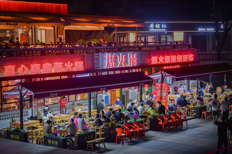 九龙坡区商务委相关负责人介绍,围绕“夜食、夜宿、夜娱、夜市、夜读、夜动”六大维度,当地正积极打造“不夜九龙”夜经济名片。近年来,新打造寅派动力、UPTOWN城上音乐剧中心、CKG48 星梦剧院、金彩时光等4个夜间演艺新空间,开展文艺演出上千场;培育九龙意库、京渝文创园、交通茶馆、军哥书屋、五洲书店等一批“网红”新业态,24 小时不打烊书店4个;光影艺术节、国际啤酒文化节、火锅欢乐节等特色鲜明的夜间消费活动贯穿全年……