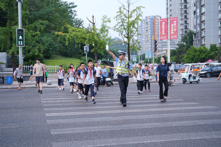 “同学们,刚过去的暑假里,你们有没有在游戏里收到过‘免费送限定皮肤’的消息?这可能是骗子设下的陷阱哦!”9月1日一早,重庆外国语学校森林小学校园里,身着警服的“学长哥哥”话音刚落,台下便响起一片此起彼伏的“我知道,我知道”。这一天,重庆市中小学迎来秋季开学首日,区公安分局在全区各个中小学、幼儿园同步开展“开学第一课”安全教育活动。