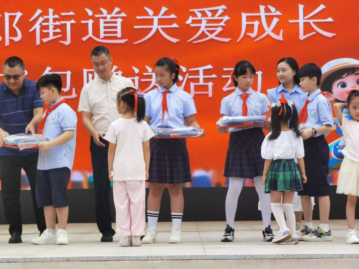 二郎街道为学校268名一年级新生送上了一份特别的开学礼——崭新的书包。二郎街道、凤凰路社区相关负责人来到开学典礼现场,将这份满载关爱与祝福的礼物递到孩子们手中,为他们崭新的学习生活注入温暖与期待。