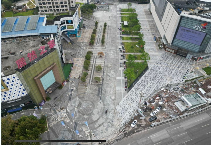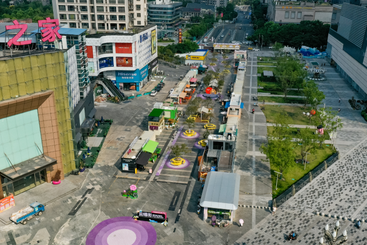 为改变这一现状,二郎街道通过政企合作模式,推动闲置地块“变身”。去年12月,闲置地块启动改造,如今,这块闲置空地已然“改头换面”,变身为商业街区PulsePod云嘻街(以下简称“云嘻街”)。