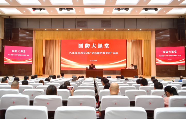 九龙融媒讯(记者 冉冉 周邦静 摄影报道)9月是“全民国防教育月”。9月26日下午,2025年九龙坡区“全民国防教育月”活动之国防大课堂开讲,旨在强化全区党员干部的国防观念和国家安全意识,提升国防素养。区委各部委、区级各部门、各人民团体及有关单位分管负责人,各镇党委、街道党工委分管负责人,全国国防教育示范学校相关负责人,市级国防教育基地和市级爱国主义教育基地相关负责人参加活动。
