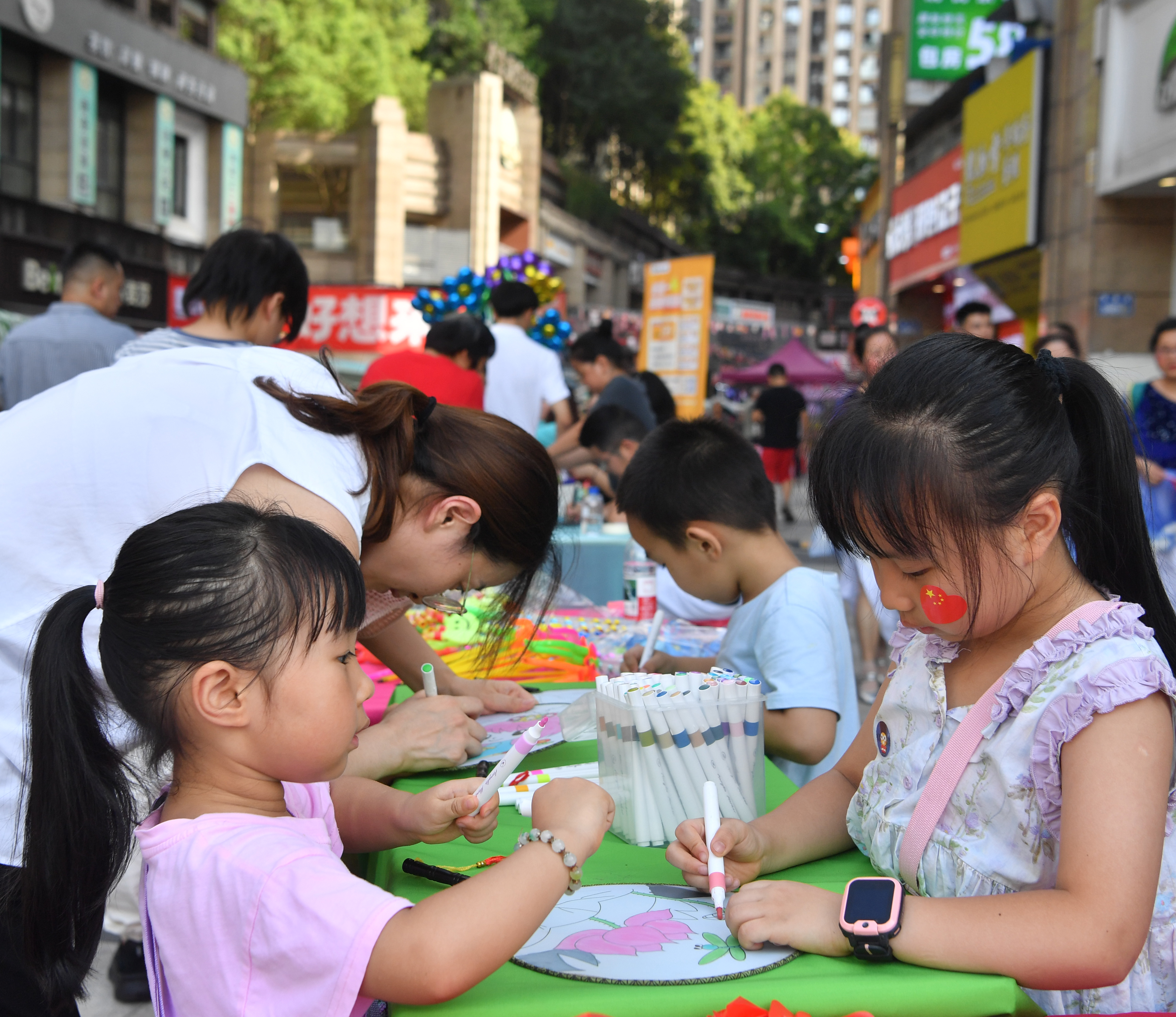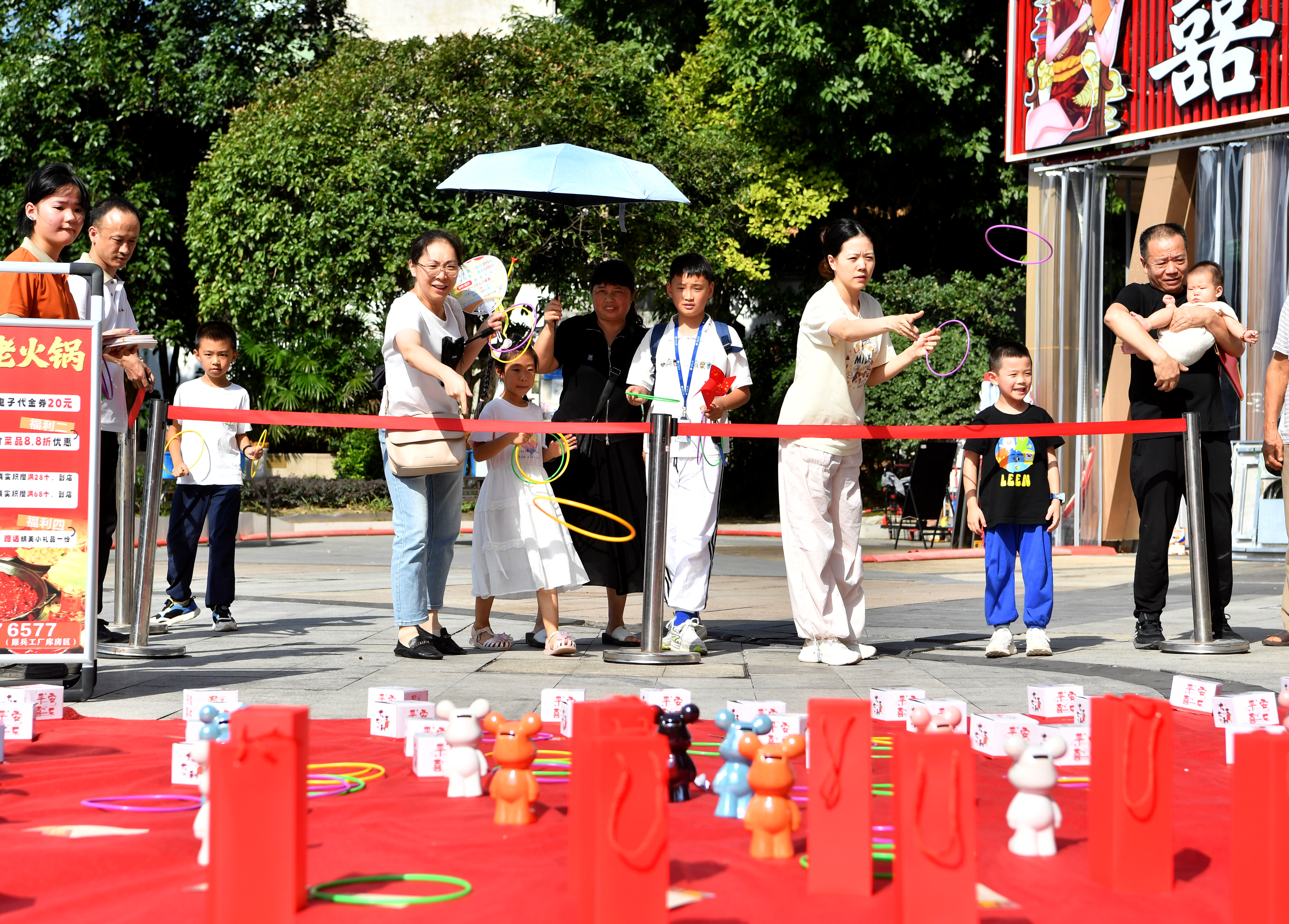 除了文艺汇演,中秋传统游园活动区也热闹非凡。各路商家“各显神通”,吸引了众多居民带着家人参与。一时间,商业街变成了趣味十足的欢乐场。