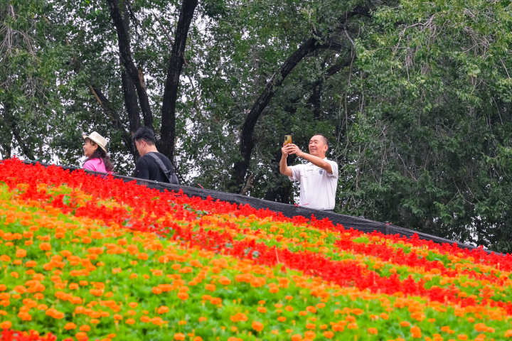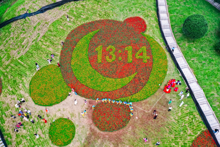 由5万余盆鲜花组成的“爱情花海”正式亮相