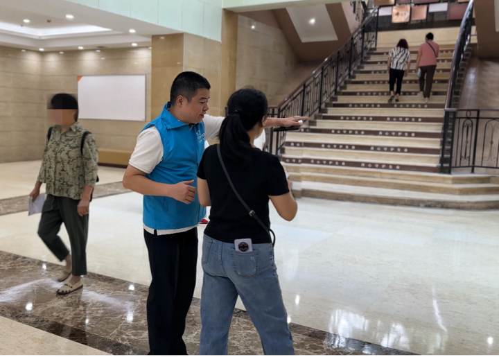 “您好,请问您要去哪个科室?”“外科门诊在1号楼1楼,请往这边走!”清晨的新院区里,“爱在杏林”志愿者们身着蓝马甲,早已分布在门诊大厅、内外科诊区、电梯口等关键位置,主动为患者提供帮助:引导老人前往诊室、协助操作自助挂号机、陪伴行动不便者取药……面对新院区面积广、布局复杂的情况,医院各科室党员、干部及职工踊跃报名组建志愿服务队,以高度的责任心,用耐心解答、细致引导和贴心协助,化解患者就诊中的各类难题。许多初次前来的患者,一进门就感受到志愿者的热情,迅速消除了对新环境的陌生感。这支“蓝马甲”队伍,也成为连接医患的“暖心桥”,赢得广泛好评。
