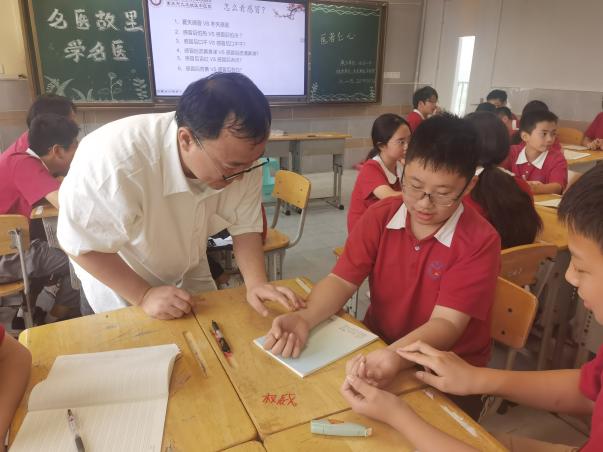 活动中,区中医院专家团队以“趣味科普+中医体验”相结合的方式,向师生们讲解中医药发展历程与名医典故,现场演示“望闻问切”四诊法操作流程,并结合实物介绍中药、拔罐、推拿等常见疗法的原理及应用场景。