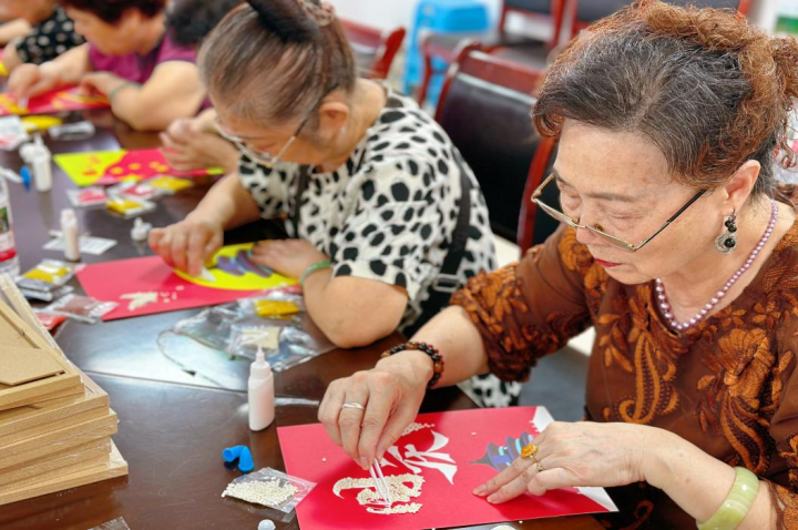9月29日上午,石杨一社区活动室内五彩斑斓,“双节共赴美好约·种子追光绘华章”迎中秋庆国庆主题手工DIY活动正在进行,居民代表、居民小组长、党员代表、特扶家庭等共20人,用颜色各异的红豆、绿豆、小米等天然种子作画,通过构图、粘贴、定型等步骤,创作出了国旗、玉兔、明月等惟妙惟肖双节元素的画作,大家互相交流技巧,现场欢声笑语,气氛热烈。