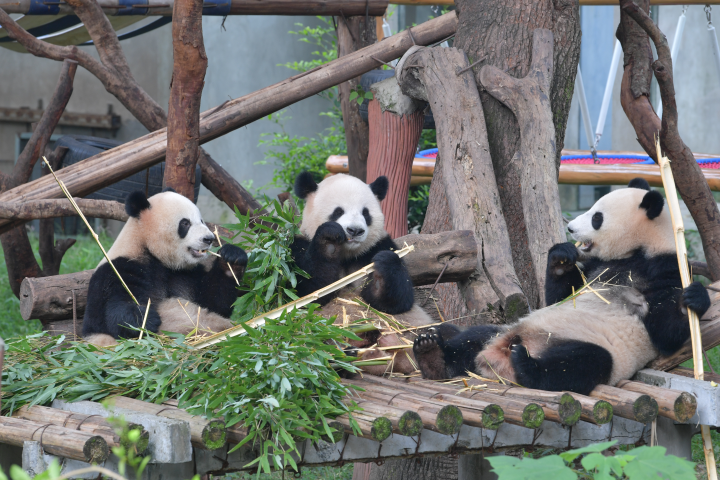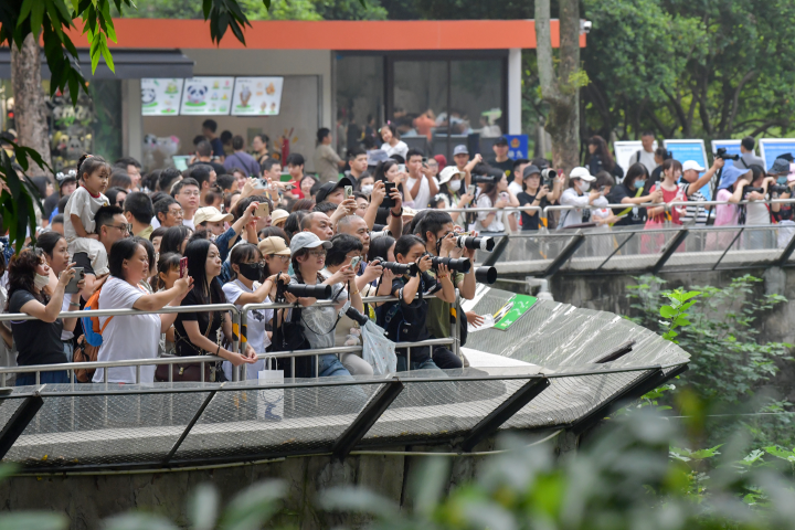 “我们昨晚从长沙过来,今天特意起了个大早,就想着错开最高峰,没想到大家想法都一样——‘都是大聪明’!”带着妹妹前来的邱女士笑着对记者说,“我们都是第一次看大熊猫,吃饭时怡然自得,玩耍时懵懂可爱,太好玩了!”