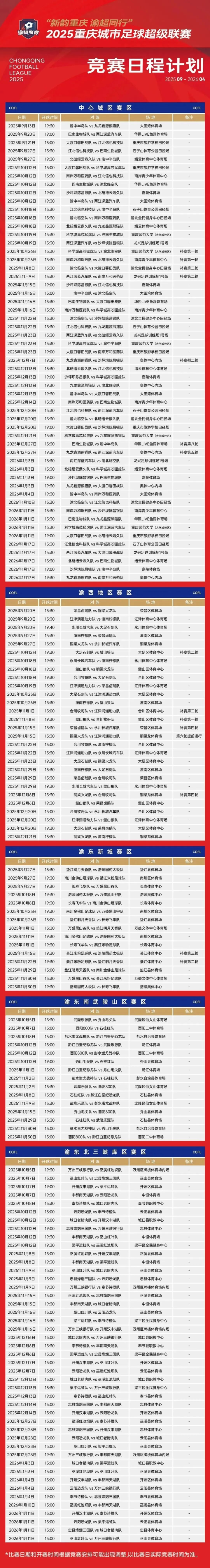 还在蹲赛程的九龙坡球迷快看过来!