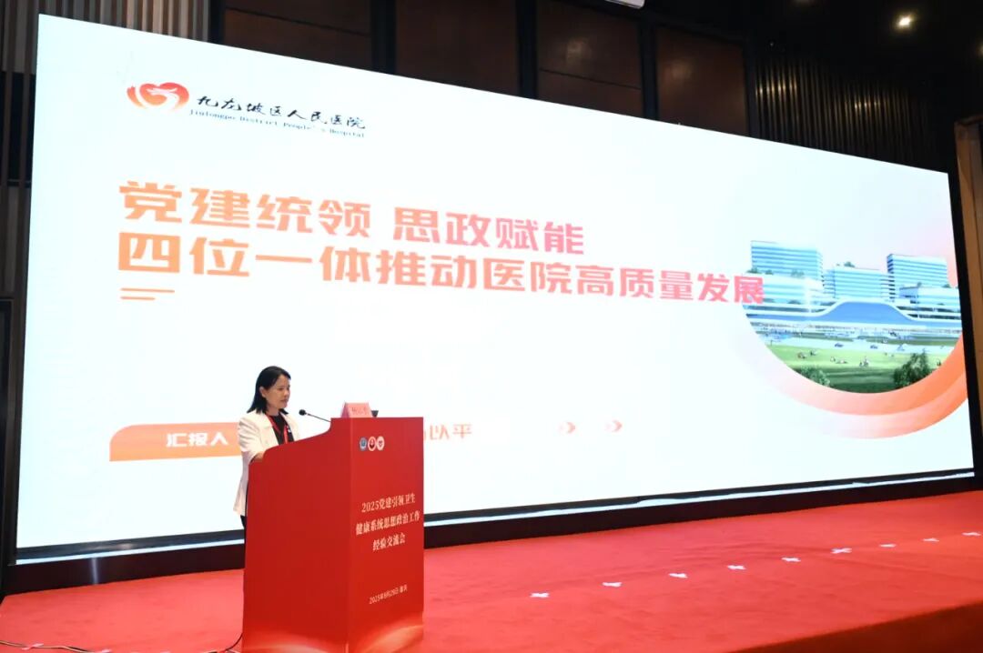 会上,杨以平以《党建统领 思政赋能 四位一体推动医院高质量发展》为主题,分享了医院在思想政治工作中的实践与思考:一是抓好三项工程,党委坚强领导一贯到底:思政铸魂强基工程;党建统领治理工程;医路清风护航工程。二是做实三项举措,思政工作守正创新发展:用活思政资源;选树先进典型;擦亮支部品牌效应。三是壮大三支队伍,先锋模范作用突出发挥:“双任双免”优选书记队伍;“双向培养”优化党员队伍;“三带帮联”优培人才队伍。四是力推三大改革,服务体系模式变革重塑:“无陪护病房”破解照护困局;“紧密型医共体”打造改革典范;“九小儿”儿科联盟夯实健康网络。