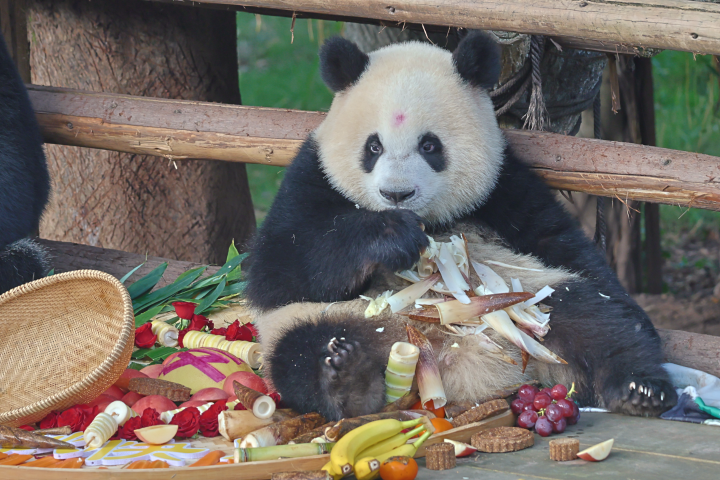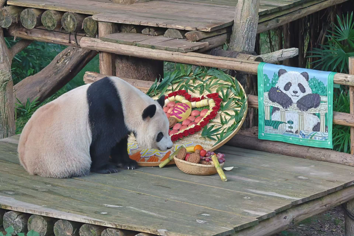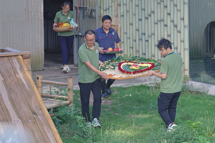 “每种动物的中秋餐都经过设计,既要贴合它们的自然饮食习惯,又要严格保证营养均衡。比如大熊猫的餐食以竹类为核心,大象则必须搭配足量粗纤维食物,确保它们吃得健康、吃得开心。” 活动期间,重庆动物园技术主管滕明生向记者介绍道。这场充满温情的 “动物中秋宴”,不仅让游客近距离感受了动物过节的温馨氛围,更潜移默化地传递了科学保护动物的理念,为这个中秋假期画上了一抹别样的治愈色彩。