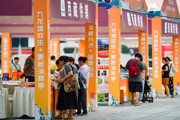 据悉,本次活动由重庆市国资委、九龙坡区人民政府联合主办,将持续至10月10日,为期12天。活动汇聚40余商家,涵盖食品、文创、旅游、房产、科技产品等多个品类,既有重庆农投、天友、冷酸灵等本土国企优品,也有西藏特色好物,更有中国电信、中国联通的专属优惠套餐。活动期间,除线下展销外,还同步推出“九龙宸曦”保障房推介、数字平台现场注册等服务,并通过“线上直播+线下体验”模式,为市民游客打造多元化消费场景。目前活动已进入中后期,有意向的市民游客可抓紧时间前往杨家坪步行街,近距离感受渝藏特色与国企品质,共享这场消费盛宴。