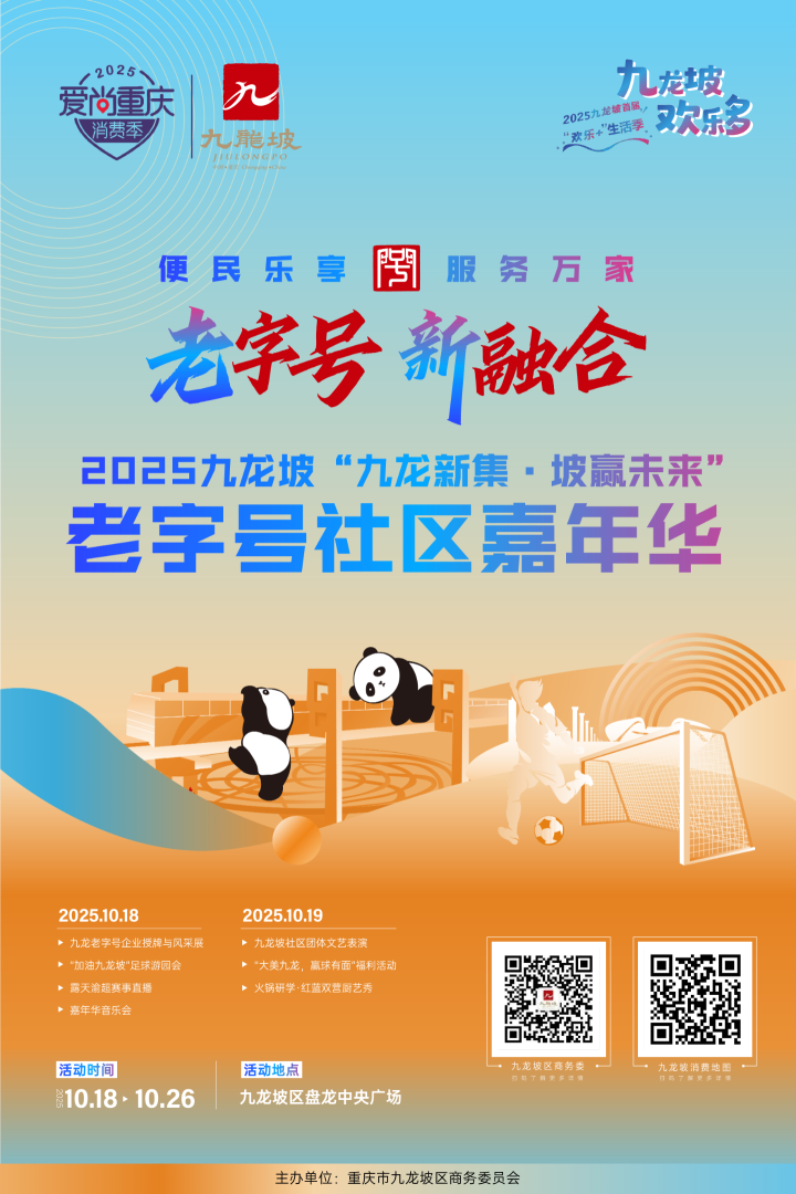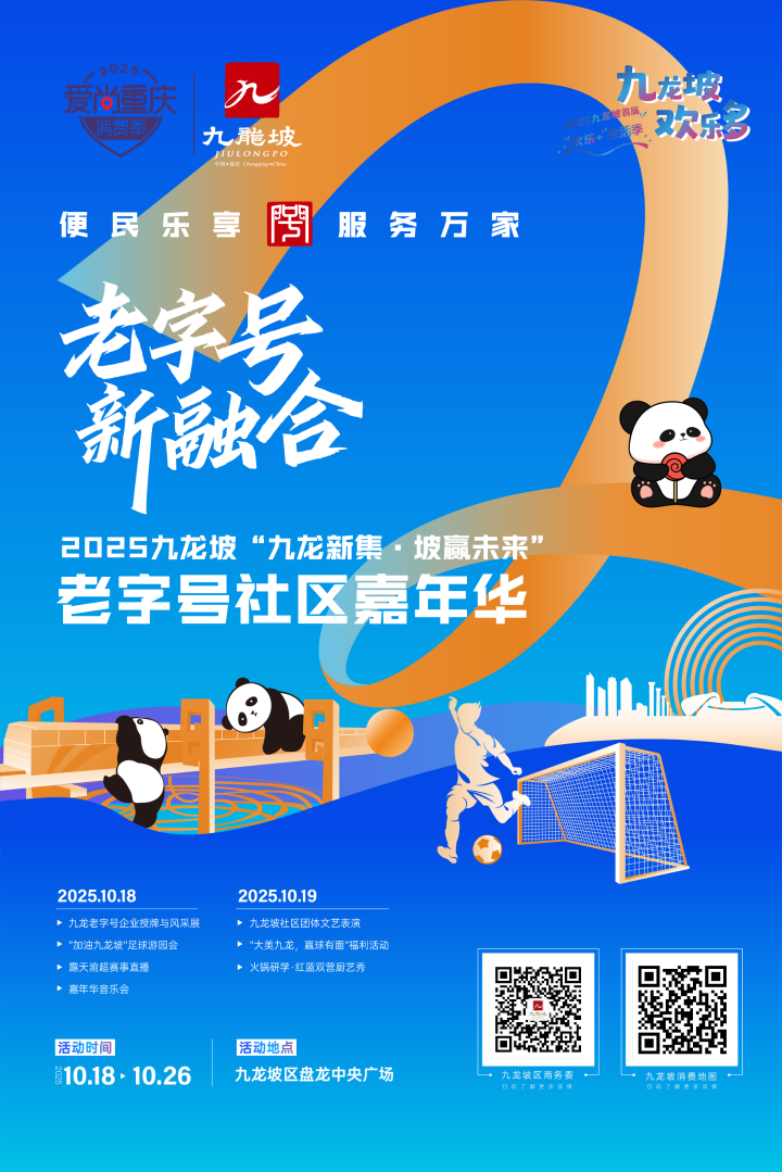 九龙融媒讯(记者 廖婉廷)为加快推动老字号品牌传承创新与市场拓展,进一步激发消费潜力,营造活力消费氛围,2025九龙坡“九龙新集・坡赢未来”老字号社区嘉年华将于10月18日至26日在九龙街道盘龙中央广场举办。本次活动以“便民乐享 服务万家”“老字号・新融合”为主题,坚持“政府引导、市场运作、社会参与”原则,通过“线上引流 + 线下体验”双轮驱动,打造集文化展示、技艺竞赛、商品展销、消费体验于一体的特色活动,持续唱响“九龙坡 欢乐多”品牌。