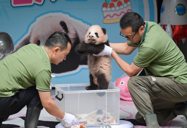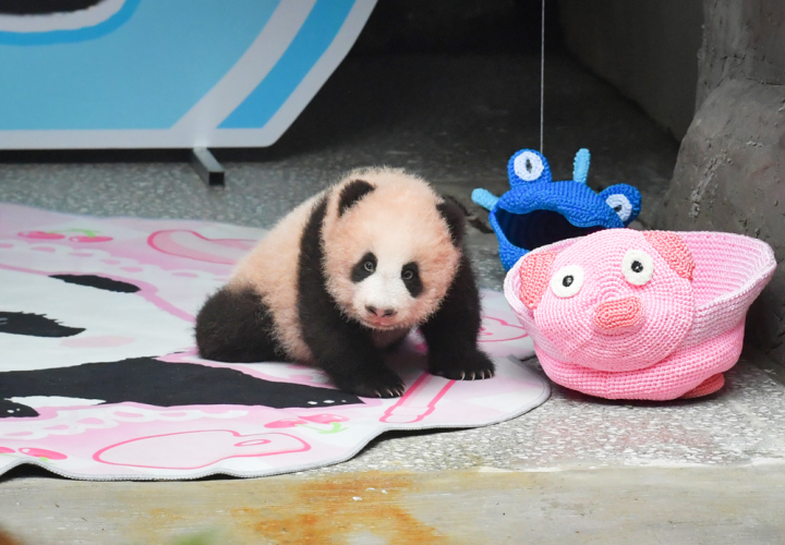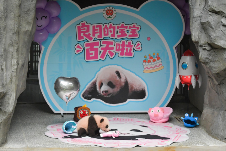 ▲大熊猫“良月”的雌性幼仔迎来百天见面会。
