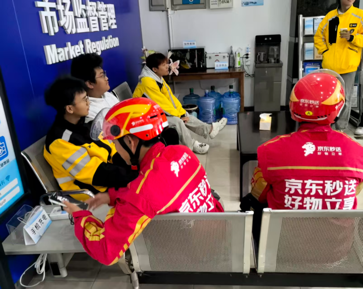 服务点围绕新业态劳动者“急难愁盼”需求,打造“实用+暖心”的服务矩阵。在这里,饮水、充电、WiFi、卫生间等基础便民服务一键直达,极大缓解户外工作者“喝水难、吃饭难、休息难、充电难”的困扰;市场监管领域政策咨询、法律指导等专业服务随时可享,助力新业态劳动者明晰权益;意见收集渠道畅通无阻,搭建起群体诉求与部门响应的高效沟通桥梁。部分服务点还结合“骑手义务监督员”机制,开展食品安全专题培训,让劳动者从服务受益者转变为社会共治参与者。