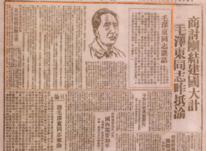 (1945年8月29日《新华日报》报道毛泽东来渝参加重庆谈判)