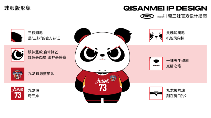据悉,奇三妹的IP形象发布源于一场充满仪式感的授牌盛典。9月29日上午,“新韵重庆 渝超同行”九龙鑫源熊猫队形象大使授牌仪式在重庆动物园熊猫馆隆重举行,九龙坡区文化和旅游发展委员会与重庆市动物园管理处相关负责人共同为这一“特殊队员”授牌。仪式现场,印有专属号码“73”的球衣披风被赠予奇三妹人偶,该号码取自“奇三妹”的谐音,既彰显专属身份,更饱含对这位形象大使的殷切期许。